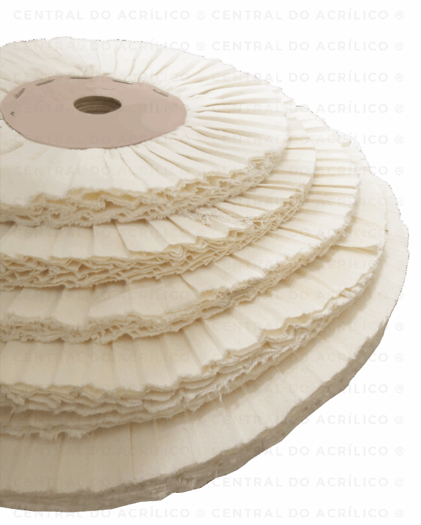 Utilizados para polir Acrílico em politriz de bancada ou manual, nossos Discos seguem o sistema Europeu de polimento, sendo fabricados em Algodão, proporcionando um excelente brilho e acabamento nas peças.